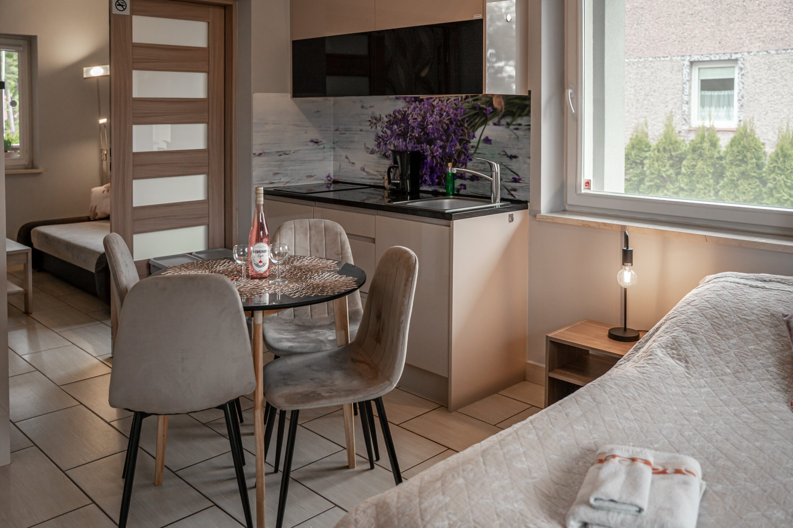 Zapraszamy do naszych 4 nowoczesnych apartamentów ze strefą relaksu, idealnych dla 1-4 osób. Każdy lokal posiada aneks kuchenny, łazienkę, wygodne łózka lub rozkładane sofy, TV, bezprzewodowy internet oraz taras z grillem.